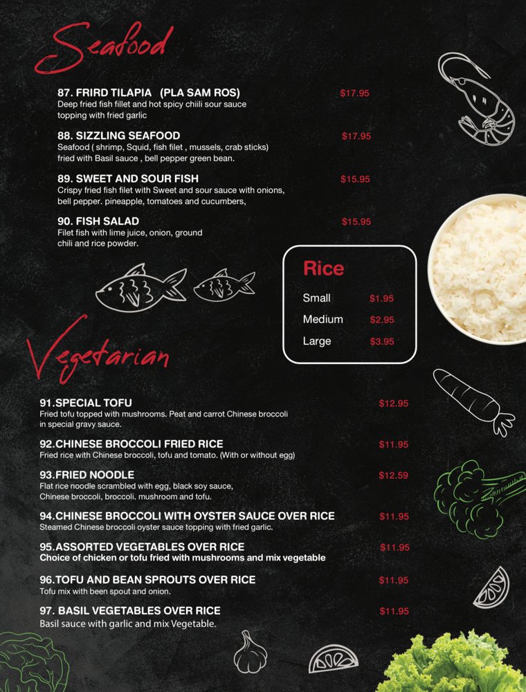 Seafood ( shrimp, Squid, fish fillet , mussels, crab sticks) fried with Basil sauce , bell pepper green bean.
